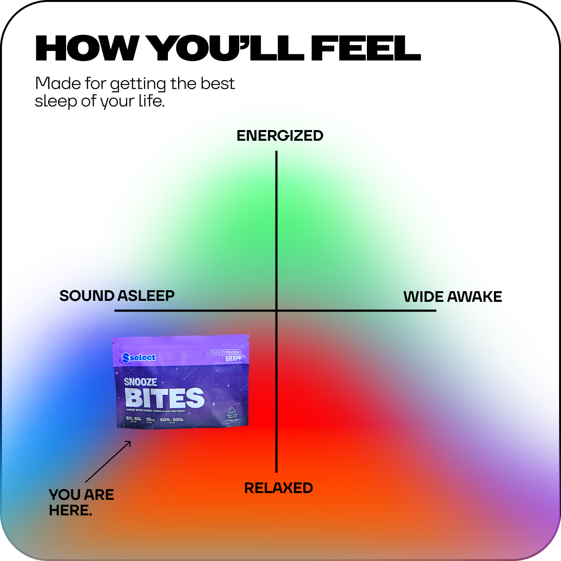 Fast onset, full reset. Perfectly balanced gummies to take you from awake to untethered in 15-30 minutes.