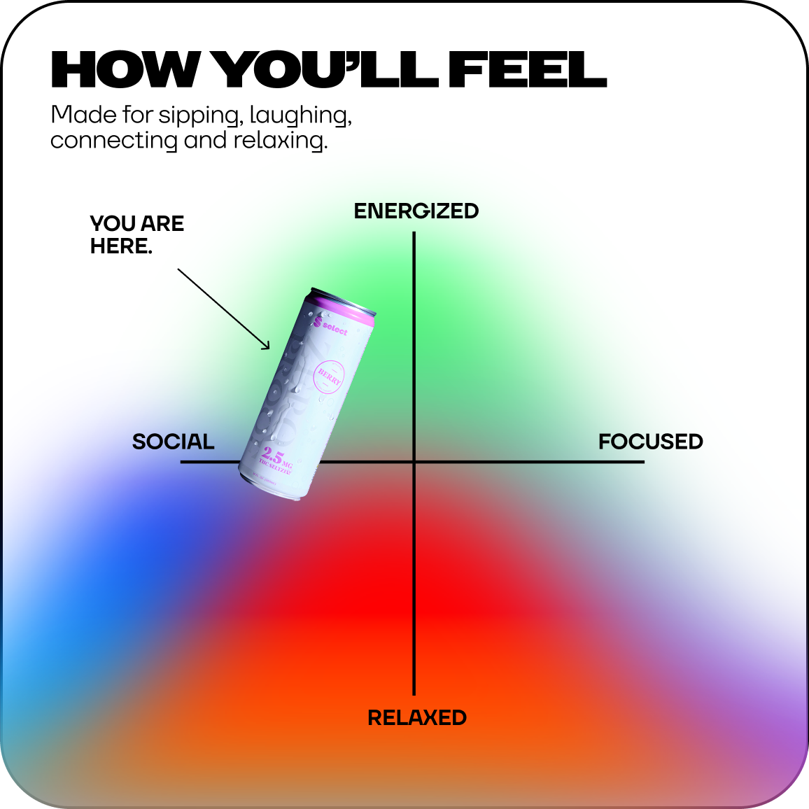 Bright, balanced, and a little mischievous. A light 2.5mg or 5mg dose designed to take the edge off, not take over. Crisp, intentional, and zero hangover—just 100% presence.